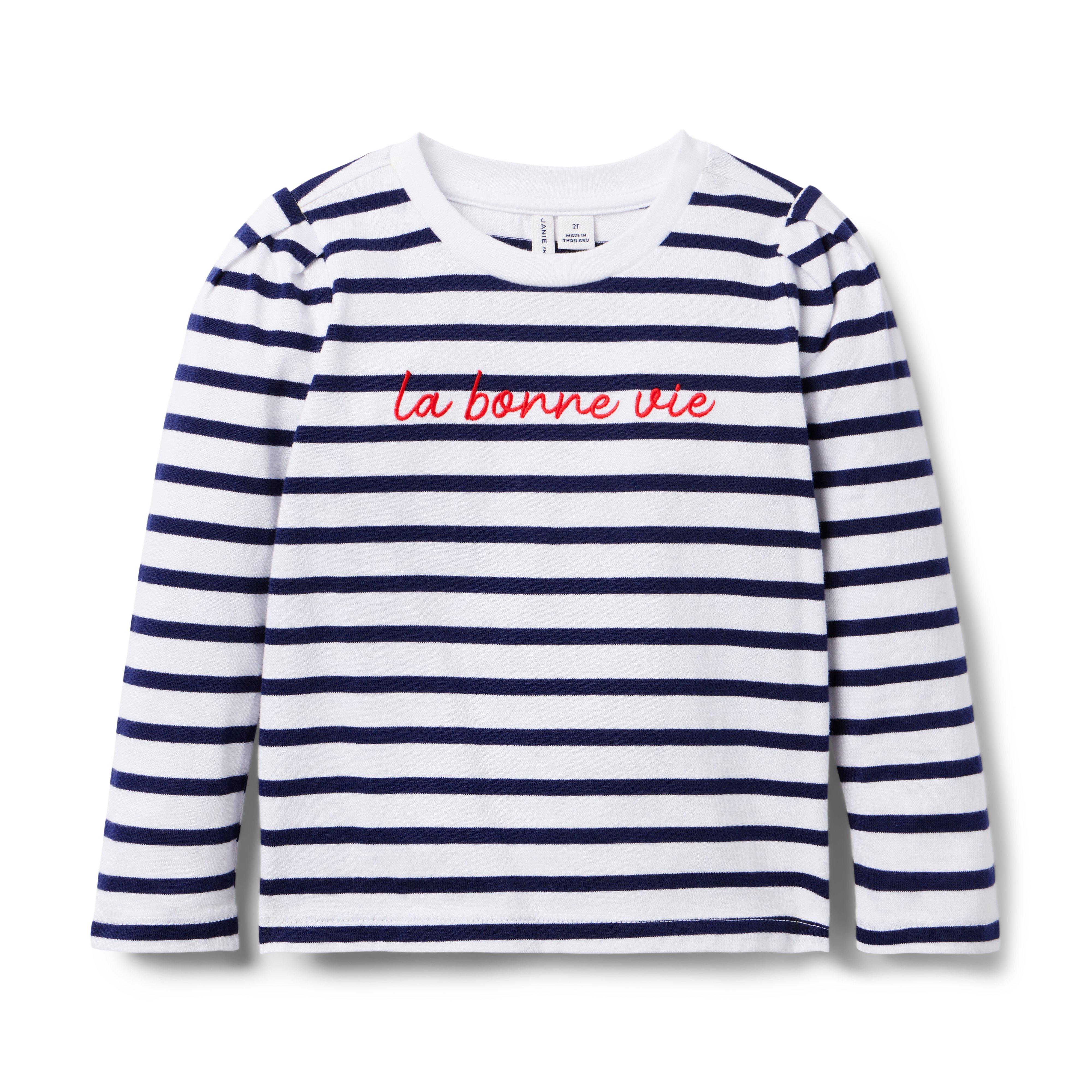 It's the good life in our soft striped top with French flair. Featuring puff sleeves and a "La Bonne Vie" graphic, all on pure cotton jersey. 100% Cotton Jersey Long Sleeve Machine Wash, Inside Out; Imported