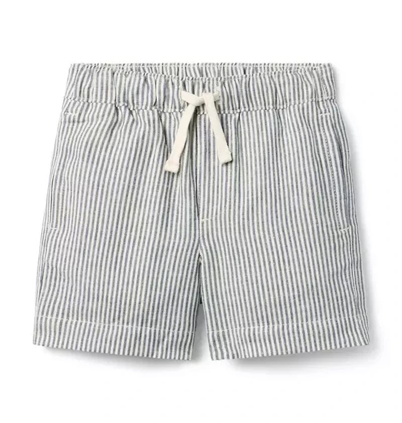 Striped Linen-Cotton Pull-On Short