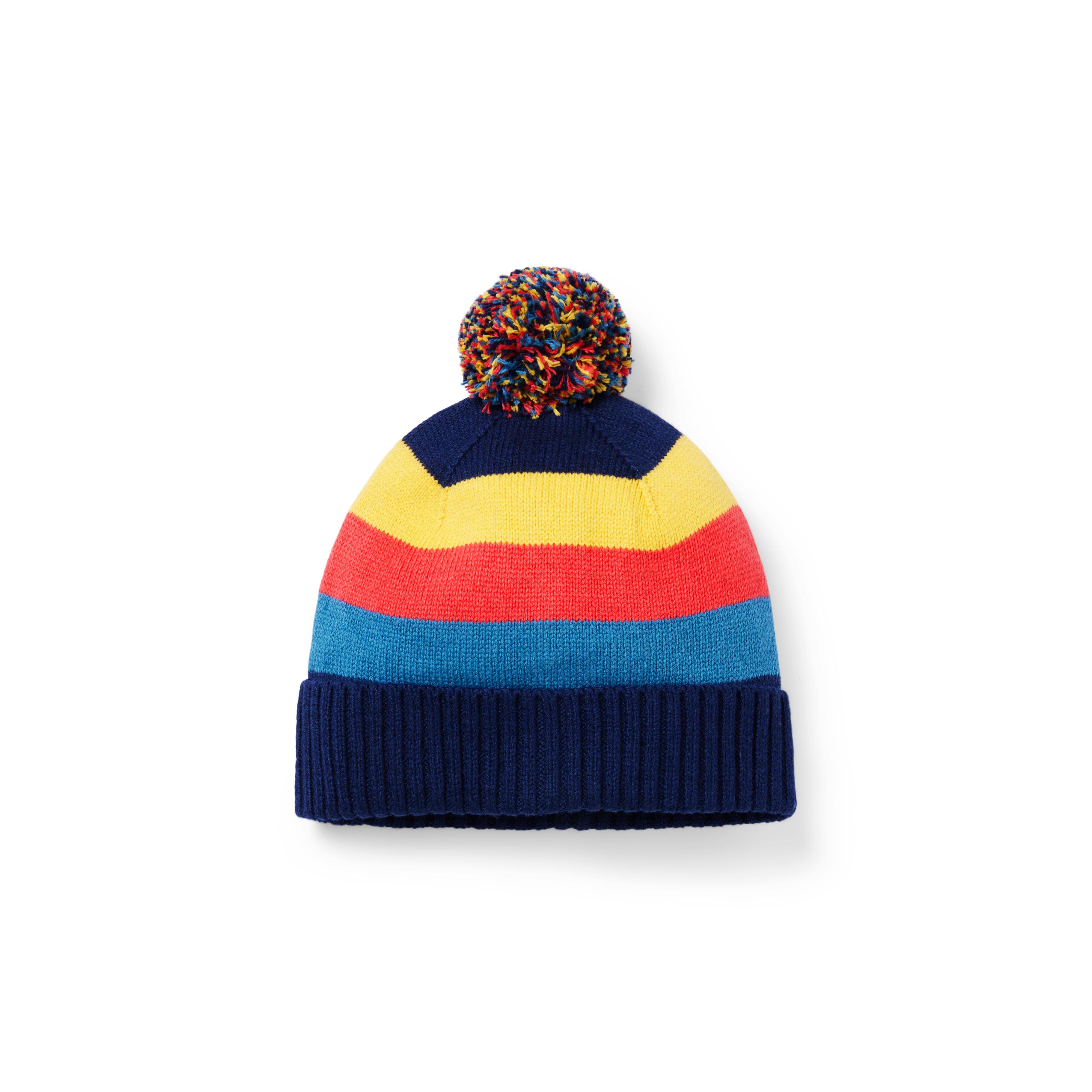 They’ll be ready for any adventure in our cozy striped beanie with a plush rainbow pom and a classic ribbed fold over. 55% Cotton/24% Rayon/21% Nylon; Lining: 100% Cotton Fully Lined Machine Wash, Inside Out, Gentle Cycle; Imported