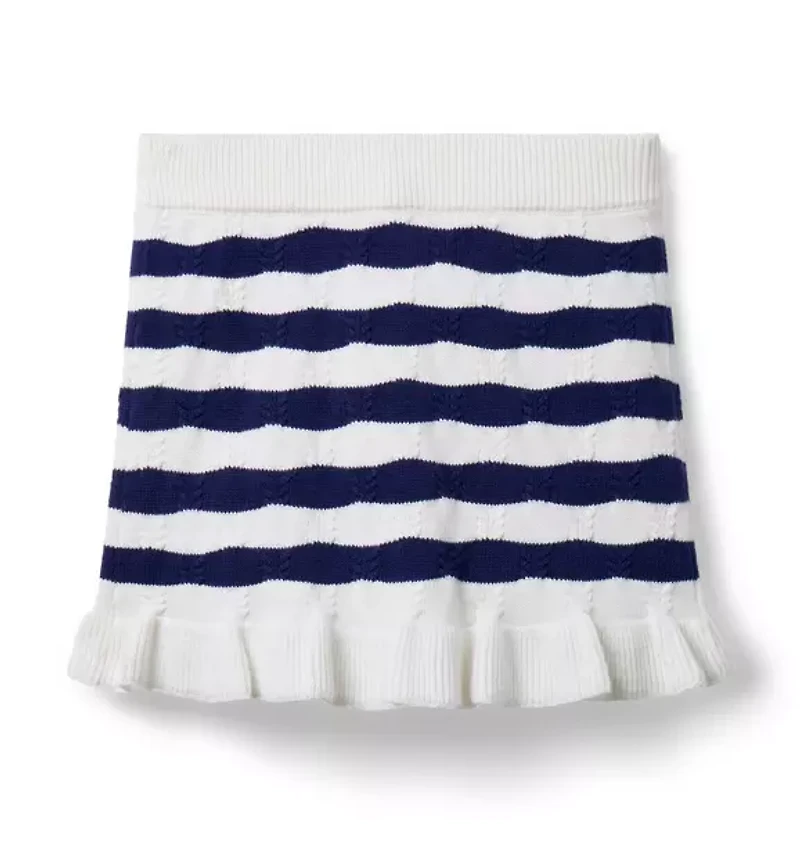 Soft, cozy and striped all over, our sweater skirt pairs perfectly with just about everything. Designed in a textured knit with a ruffle hem. 75% Combed Cotton/13% Rayon/12% Nylon Elasticized Waist Machine Wash, Inside Out, Gentle Cycle; Imported