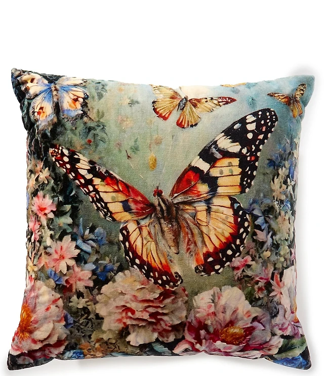 Studio D Butterfly Cotton Velvet Decorative Square Pillow