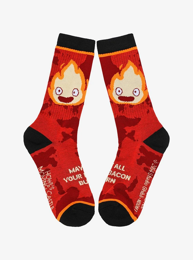 Studio Ghibli Howl's Moving Castle Calcifer Bacon Burn Crew Socks