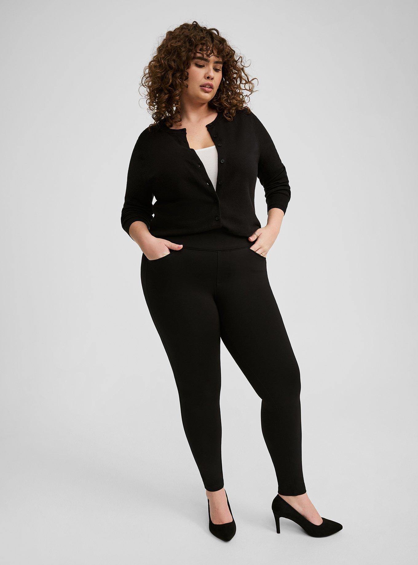 FIT High rise. Super skinny fit from hip to ankle. Pull-on design with no hardware for a smooth front. Inseams: Short 25'', Regular 27'', Tall 29''. MATERIALS + CARE Luxe Ponte knit fabric: Our signature work (any) wear fabric with office-approved tailoring, WFH stretch and comfort, and curve-loving hold. Plus, it’s machine washable! Stretch level: Maximum 68% rayon, 28% nylon, 4% spandex. Machine wash cold. Tumble dry low. Imported. DETAILS Fly-free elastic waistband. Slim Fix technology: Hidden compression panel keeps you smooth and supported. 4-pocket design. No hardware or buttons for optimal comfort. WHY WE LOVE IT The perfect pant with the comfort of leggings that easily goes day to night in style. Plus, the Slim Fix technology sculpts, smooths and can slim up to 2''!