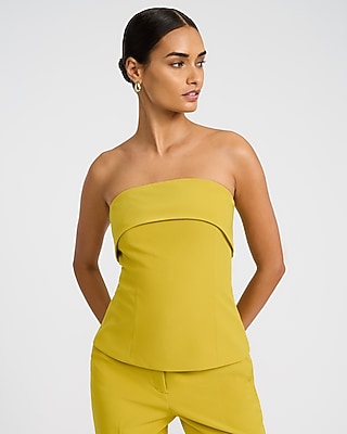 A chic tailored top complete with a fold-over strapless neckline, vertical seam details, and a center back zip closure for easy wear. This style is expertly tailored to hug every curve, for comfortable confidence all day long.
