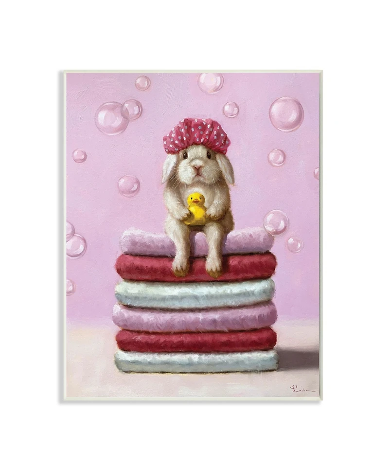Stupell Industries Cute Baby Rabbit on Bath Towels Soap Bubbles Art, 10" x 15"