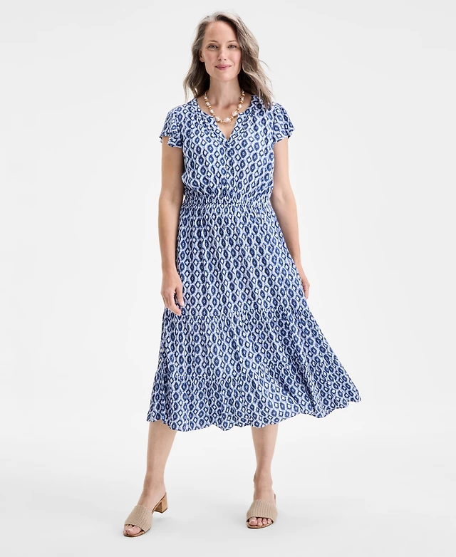 Style & Co Petite Printed Tiered Dress, Exclusively at Macy's