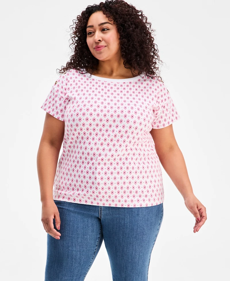 Style & Co Plus Nautical-Button Geo-Tile Cotton T-Shirt, Macy's Exclusive
