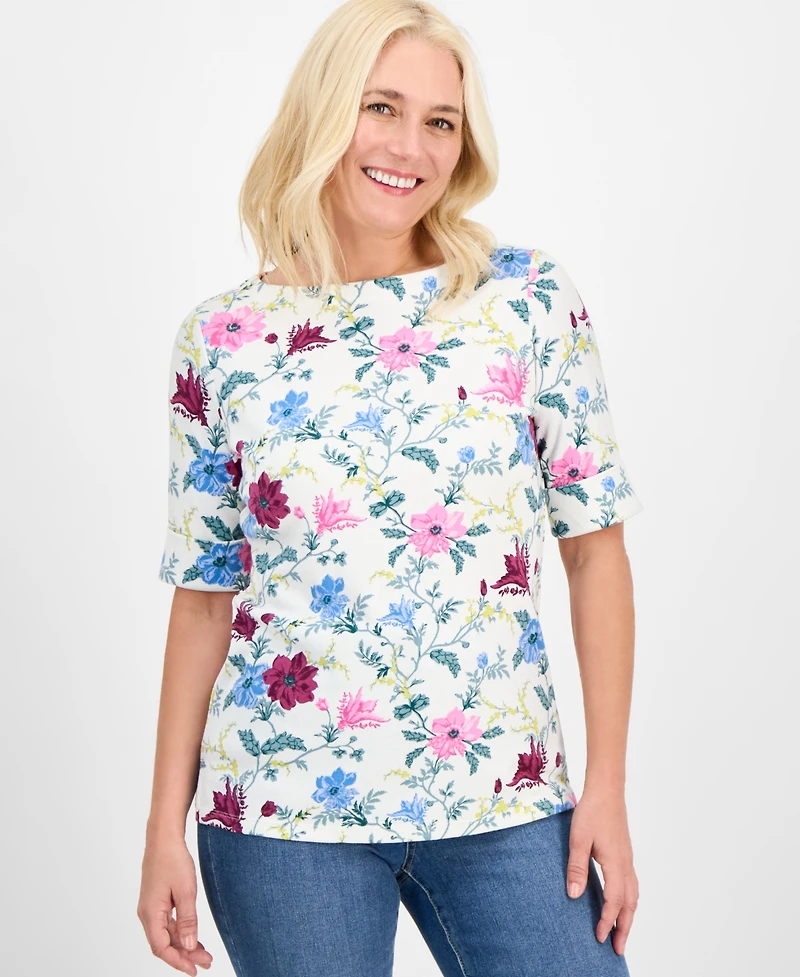 Style & Co Women's Printed Boat-Neck Elbow-Sleeve Top, Exclusively at Macy's