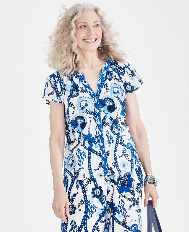 Style & Co Women's Printed Flutter-Sleeve Top, Macy's Exclusive