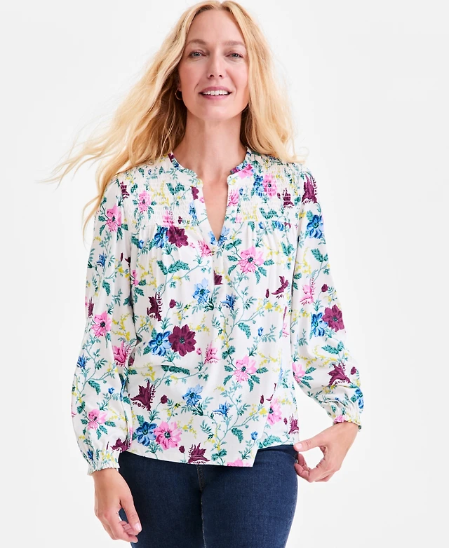 Style & Co Women's Printed Smocked Knit Top, Macy's Exclusive