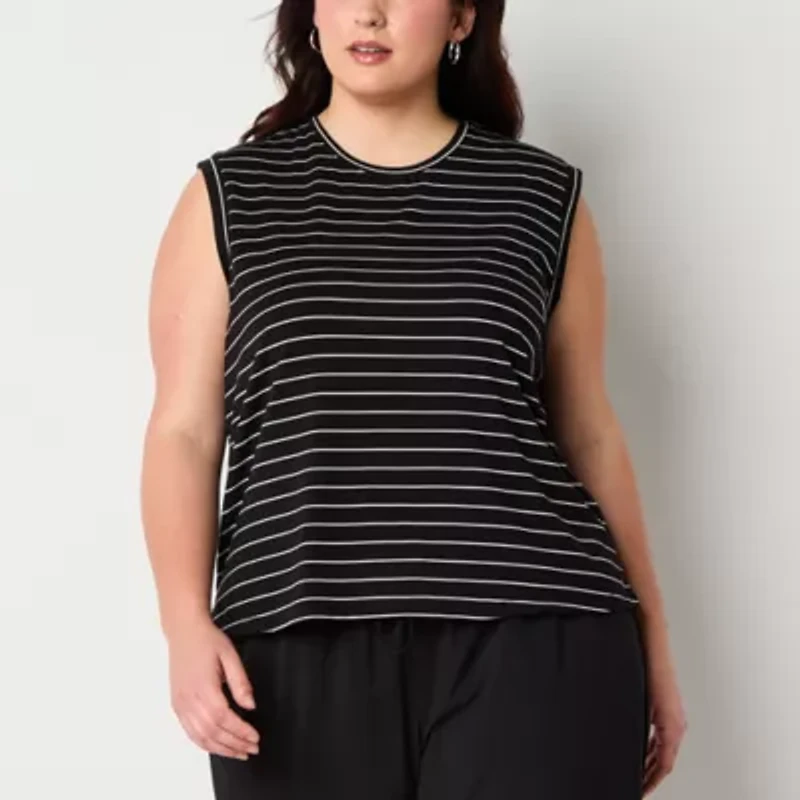 Stylus Womens Plus Crew Neck Sleeveless T-Shirt