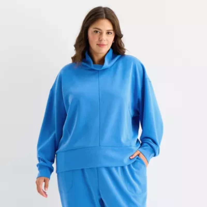 Stylus Womens Plus Funnel Neck Long Sleeve Sweatshirt