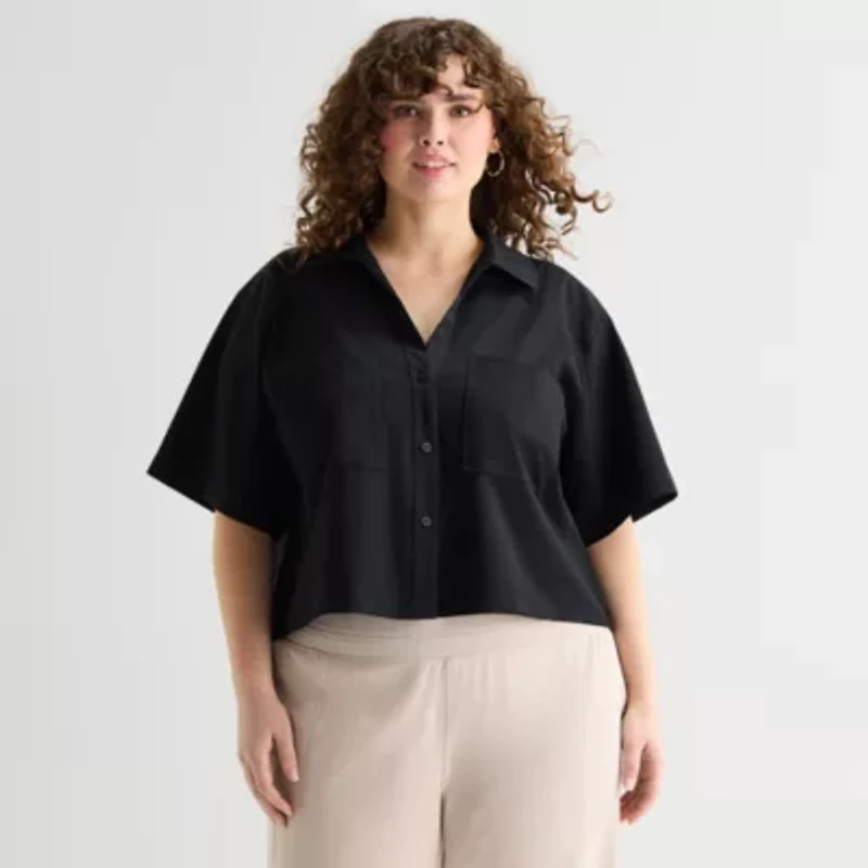 Stylus Womens Plus V Neck Short Sleeve Camp Shirt
