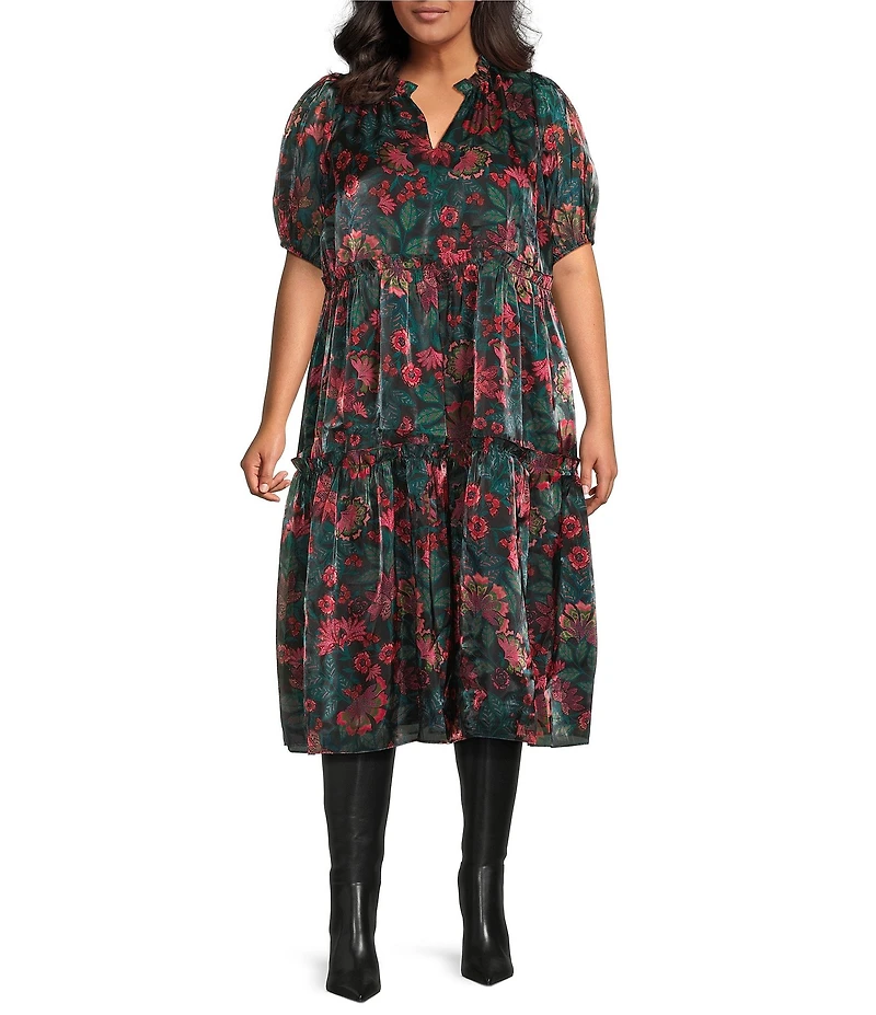 Sugarlips Plus Size Floral Print Tiered Organza Side Seam Pocket Midi Shift Dress in Franklin, TN
