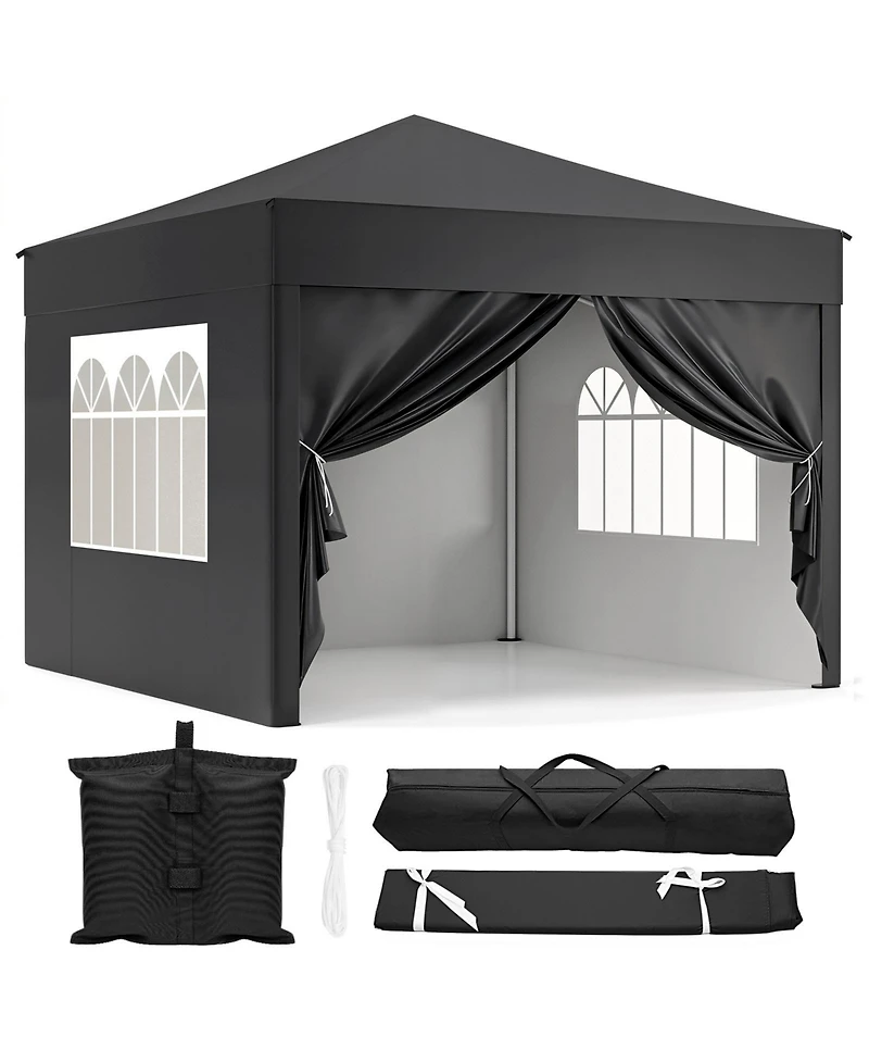 Outdoor gatherings stay comfortable and organized with this 10 ft x 10 ft folding canopy tent. Designed for fast setup, it provides reliable shade for backyard parties, camping trips, markets, and community events. The 210D Oxford fabric top with Pu coating helps resist light rain while offering Uv protection for sunny days. A powder-coated frame enhances stability for frequent use, and the included 4 removable sidewalls add flexibility for privacy and wind coverage. Packs neatly into the carry bag for convenient storage and transport.