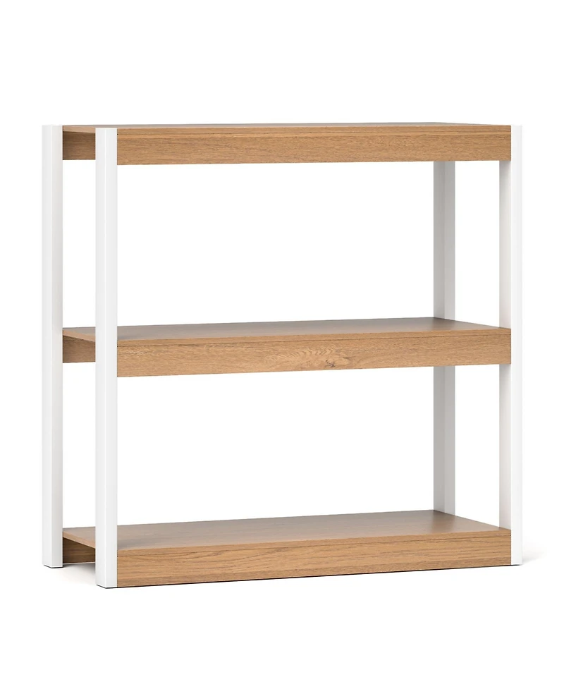 Keep everyday items organized and easy to reach with this 3-tier wooden bookcase designed for flexible storage and stable placement. Three spacious shelves provide room for books, decor, framed photos, plants, and office supplies, helping you create a cleaner, more organized look in living rooms, bedrooms, studies, or kitchens. Made from engineered wood, the unit measures 35.5" x 15.5" x 35.5" with 13.5" spacing between shelves to fit items of different heights. It supports up to 270 lbs total, with each shelf supporting up to 90 lbs for reliable daily use. Finished details like screw-hole covers create a neat appearance and a smooth surface that s easy to wipe clean. Wall-anchoring hardware is included to support steady placement when positioned against a wall.