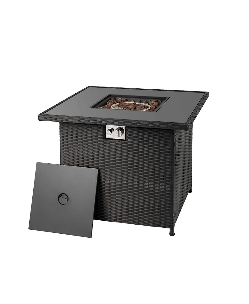 Transform your outdoor space with this multifunctional propane fire pit table. Delivering 50,000 Btu heat, it doubles as a stylish patio side table when covered. Crafted with tempered glass and Pe wicker, it promises durability and elegance. Easy ignition and flame control ensure a cozy ambiance, making it essential for your backyard.