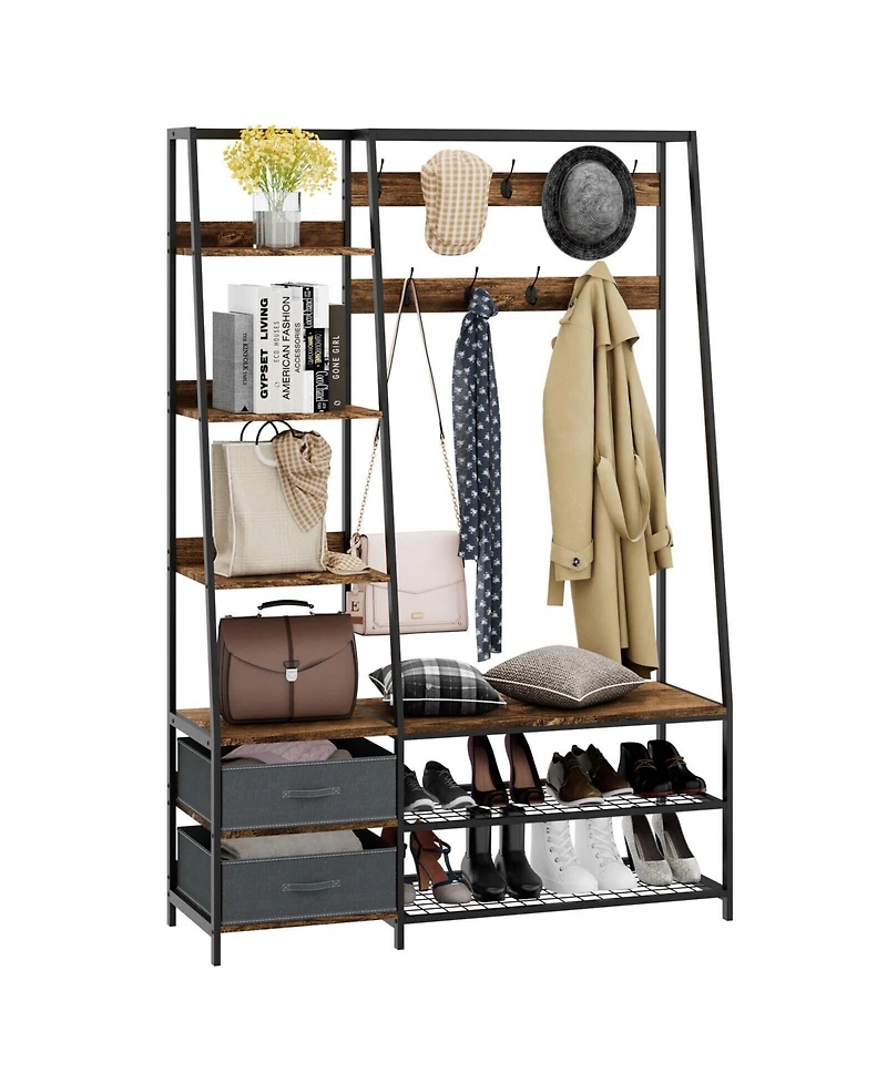 Maximize your home's organization with our multifunctional Hall Tree. Featuring 9 hooks, 6 shelves, 2 dressers, a shoe bench, and a rack, it s designed for stability and easy maintenance. Perfect for stylishly securing your essentials in one convenient spot.