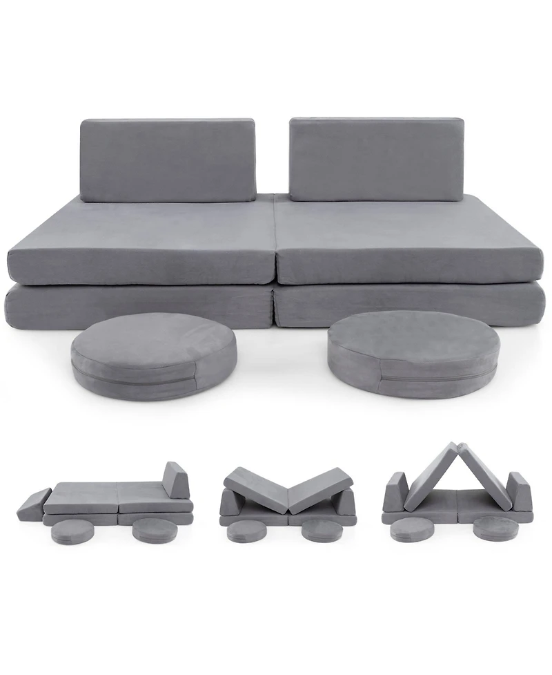 Spark imagination and cozy downtime with a six-piece modular play sofa made for climbing, stacking and lounging. Soft velvet-touch covers and supportive foam create a comfy spot for active fun or quiet reading, while the mix of shapes lets kids build forts, tunnels and seats right at home with ease.