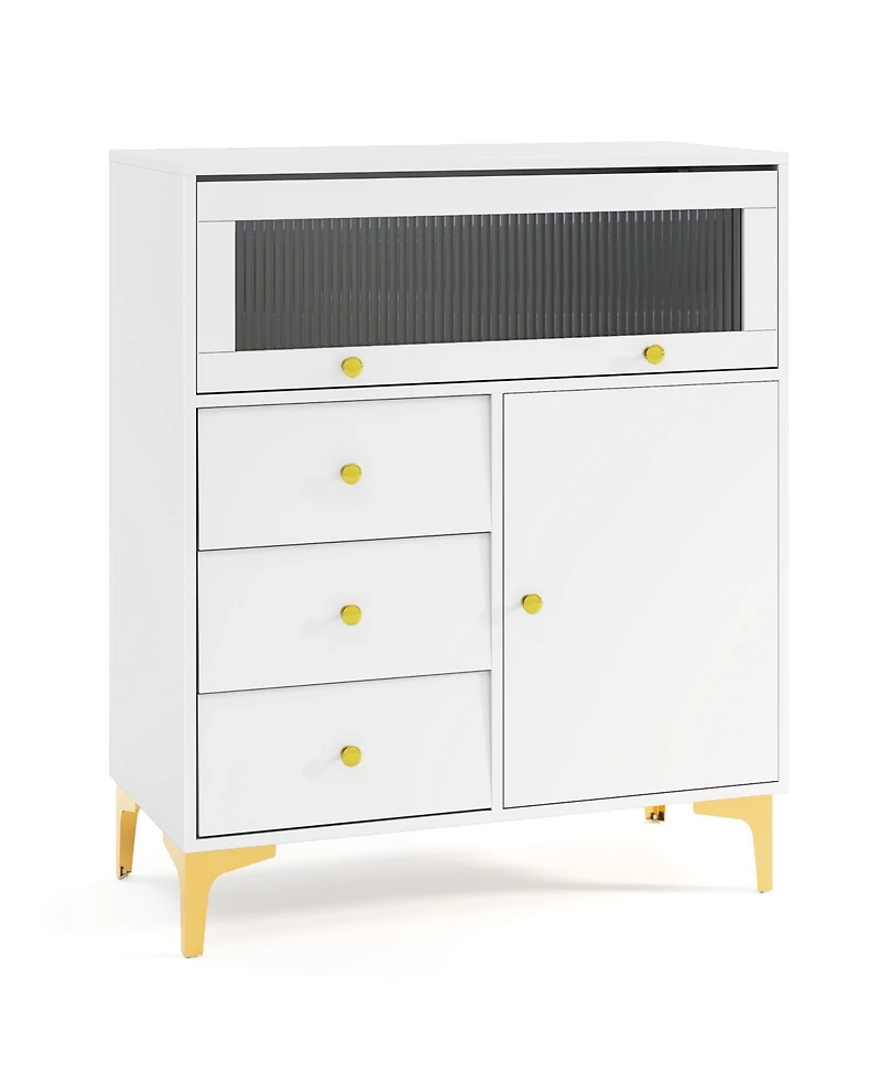 Sugift Chest of Drawers with Fluted Glass Door and Storage