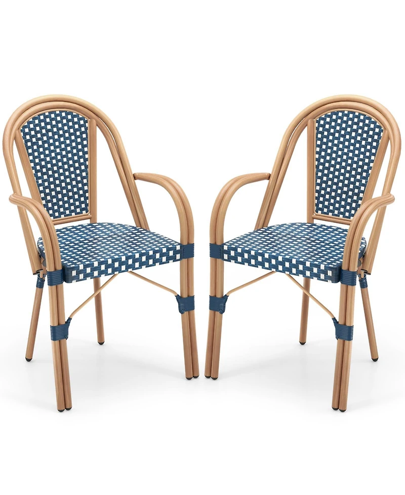 Sugift Hand-Woven Pe Wicker French Bistro Chair Set of 2 with Metal Frame