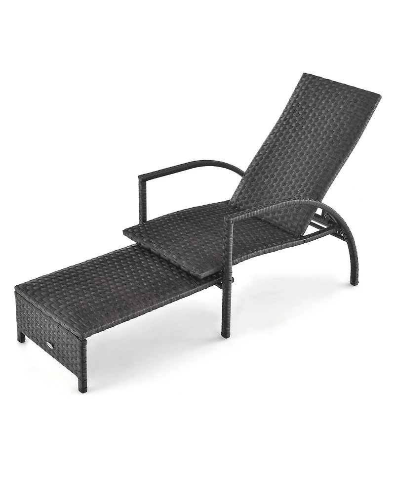 Sugift Patio Chaise Lounge Outdoor Rattan Lounge Chair with Retractable Ottoman