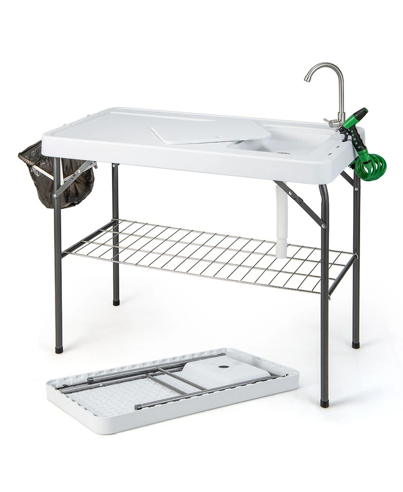 Sugift Portable Camping Fish Cleaning Table with Grid Rack and Faucet