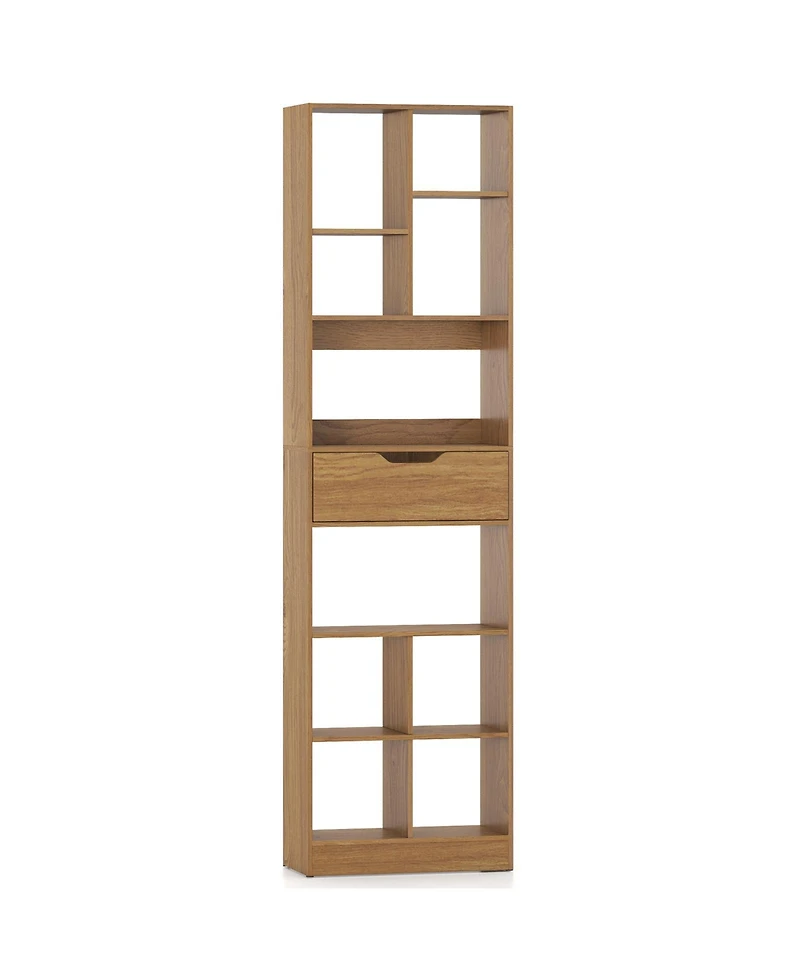 Sugift Tall Freestanding Bookcase with Drawer and Ten Cube Storage