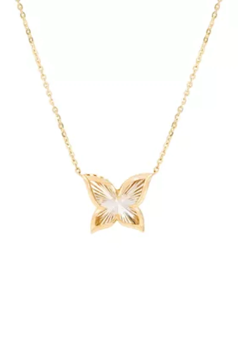 Adorn your neckline with this radiant charm necklace from Belk & Co., crafted from gleaming 10K yellow gold. The polished finish enhances the delicate butterfly design, making it a perfect everyday accessory. Spring ring clasp Polished finish Imported Belk Exclusive Product Specifications 18" L Material & Care 10K Yellow Gold Clean with a soft cloth