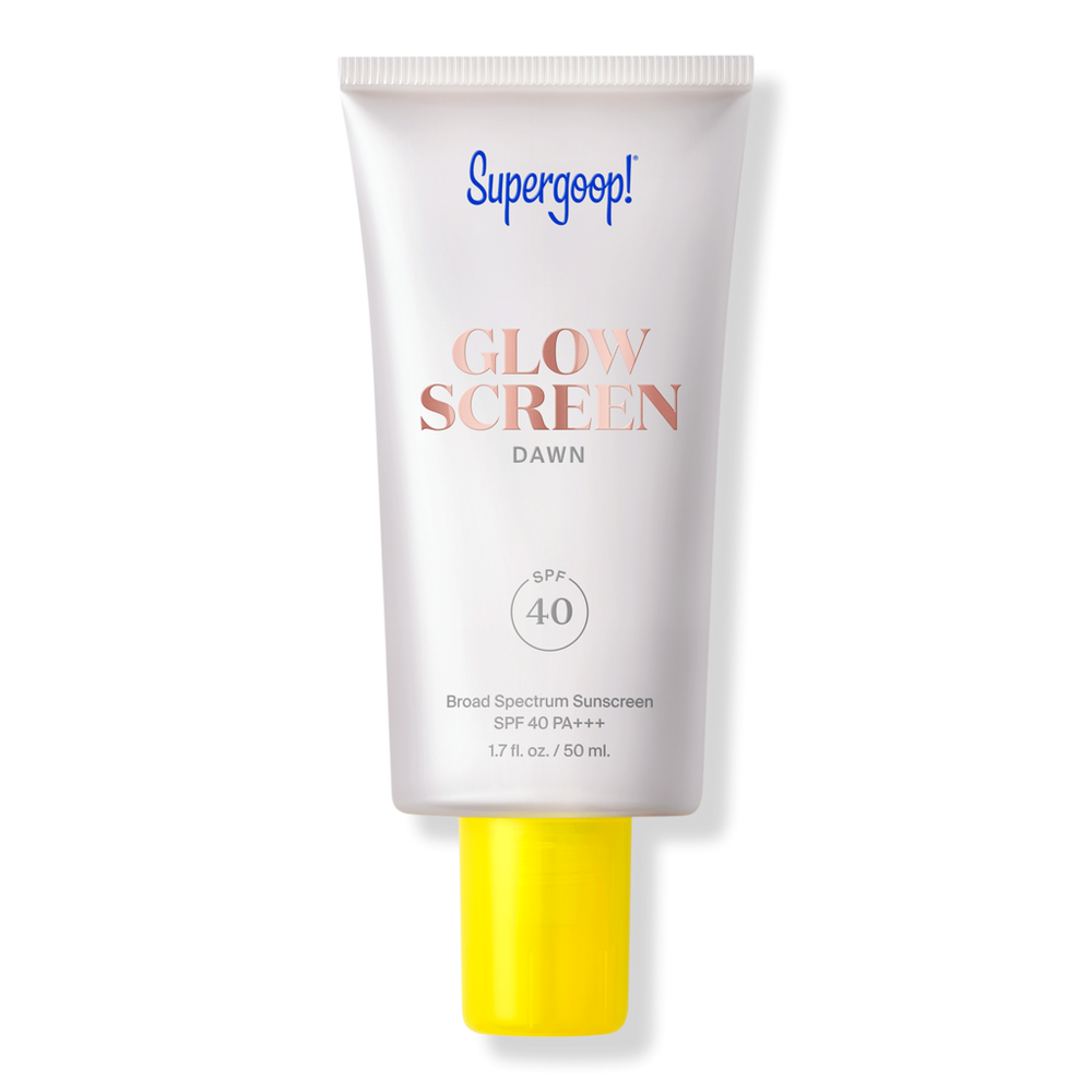 GLOWSCREEN SPF 40 DAWN. Benefits: Lightweight and melts into your skin. Formulated with a micro pearl blend for brilliant, diffused radiance. A glowy primer that creates a smooth, flawless base under makeup. Hydrating and dewy with hyaluronic acid and niacinamide. Available in flexible, inclusive shades with no white cast. Key Ingredients: Hyaluronic Acid and Vitamin B5: A hydration cocktail that leaves skin feeling soft & comfortable. Niacinamide: Provides radiant, glowing skin. Sea Lavender: Provides powerful antioxidant protection & supports long-lasting hydration. :