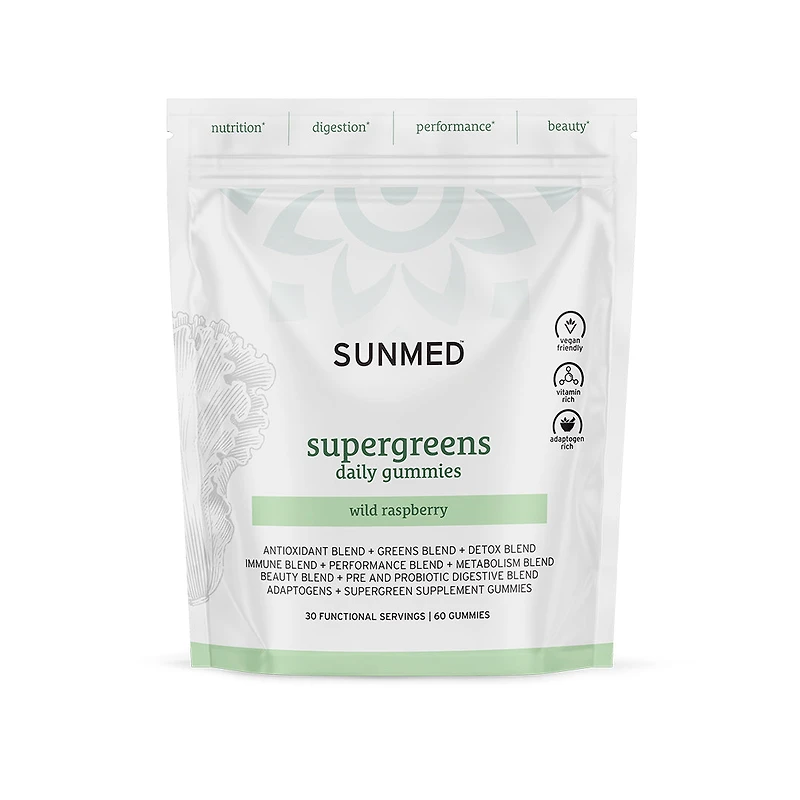 Supercharge your health with Sunmed’s Supergreens Daily Gummies. No powder, no mess — just 2 delicious gummies a day to achieve a healthy serving of nutrients and so much more.*