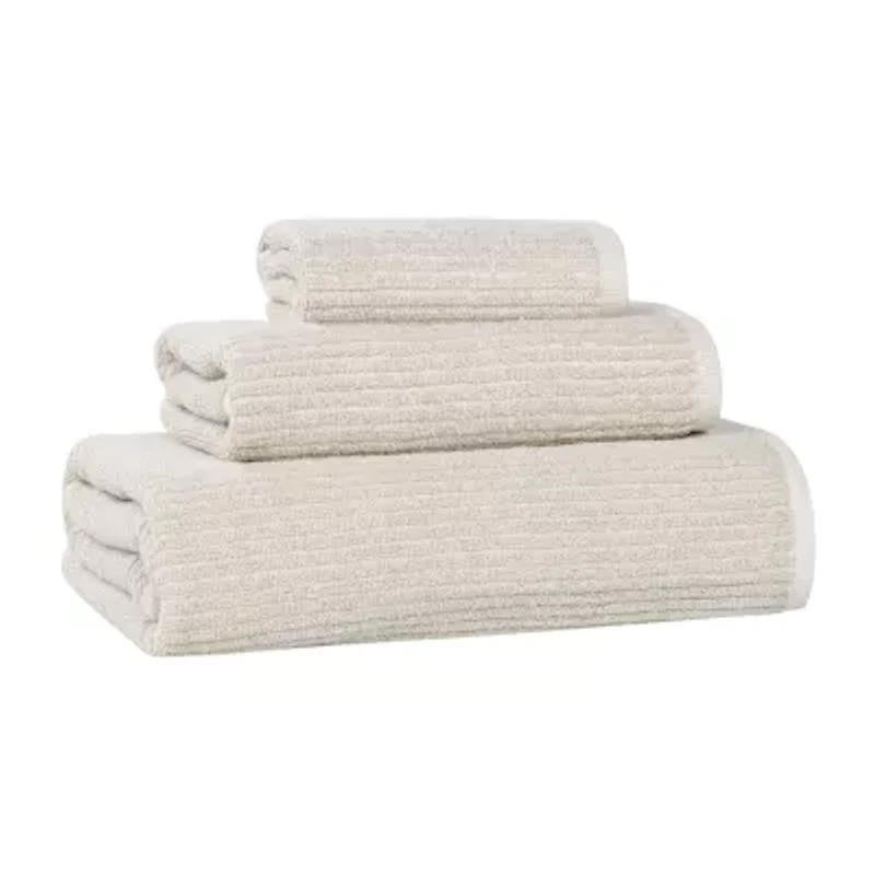 Elevate your everyday routine with the Destin Cotton Blend 3-Piece Towel Set. Crafted from a soft, absorbent 80% cotton and 20% viscose blend, these quick-drying towels feature a sleek ribbed texture and stylish melange finish that adds a modern touch to any bathroom. This essential set includes one (1) bath towel, one (1) hand towel, and one (1) face towel/washcloth in your choice of Beige, Charcoal, Denim Blue, or Platinum. Bath Towel: 30" x 54", Hand Towel: 16" x 30", Face Towel: 13" x 13", OEKO-TEX certified for safety and sustainability. Modern. Soft. Effortlessly refined.