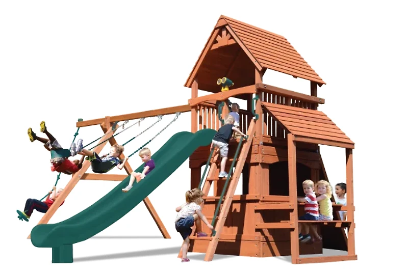 Just imagine the memories that will be made on this Supreme Fort! The 6.5' platform height , two slides and 9.5' high swing beam will provide endless hours of fun for the kids and peace of mind for parents knowing the unit is constructed with massive 4x4 and 4x6 all natural chemical free cedar.   A rock wall and canopy roof are included as standard features!  And add a playhouse underneath with a cafe table to eat at on the side! Just imagine the memories that will be made on this Supreme Fort! The 6.5' platform height , two slides and 9.5' high swing beam will provide endless hours of fun for the kids and peace of mind for parents knowing the unit is constructed with massive 4x4 and 4x6 all natural chemical free cedar.   A