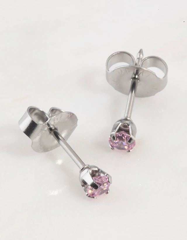 Surgical Stainless Steel 3MM Pink Cubic Zirconia Piercing Stud