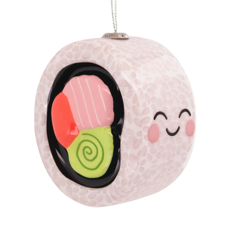 Let the good times roll this holiday season with this fun food-themed Christmas tree ornament. Connoisseurs of Asian cuisine will delight in adding this cute and tasty design of a smiling sushi roll to their seasonal decor. Makes a fun novelty gift for foodie fans.