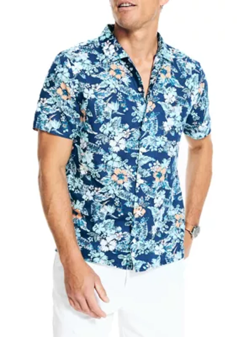 The floral print highlights this short-sleeve button-down shirt crafted from Sustainably Crafted linen-cotton. This classic-fit style is complete with Nautica's J-class logo at the chest. Button-down collar Short sleeves J-class logo at chest Classic fit From the Sustainably Crafted collection Floral pattern Imported Material & Care Linen, cotton Machine washable