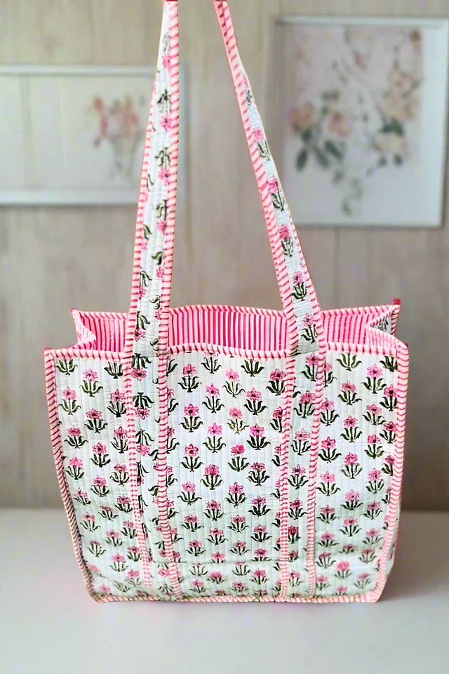 Carry your belongings in style with Sutton Pink and White Floral Tote Bag. Featuring a playful pink and white floral print, this cotton tote bag is perfect for a day out. Its quilted style adds a touch of luxury while keeping your items safe and secure.
