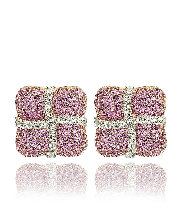 Suzy Levian New York Suzy Levian Sterling Silver Sapphire & Created White Sapphire Wrapped Cushion Drop Stud Earrings