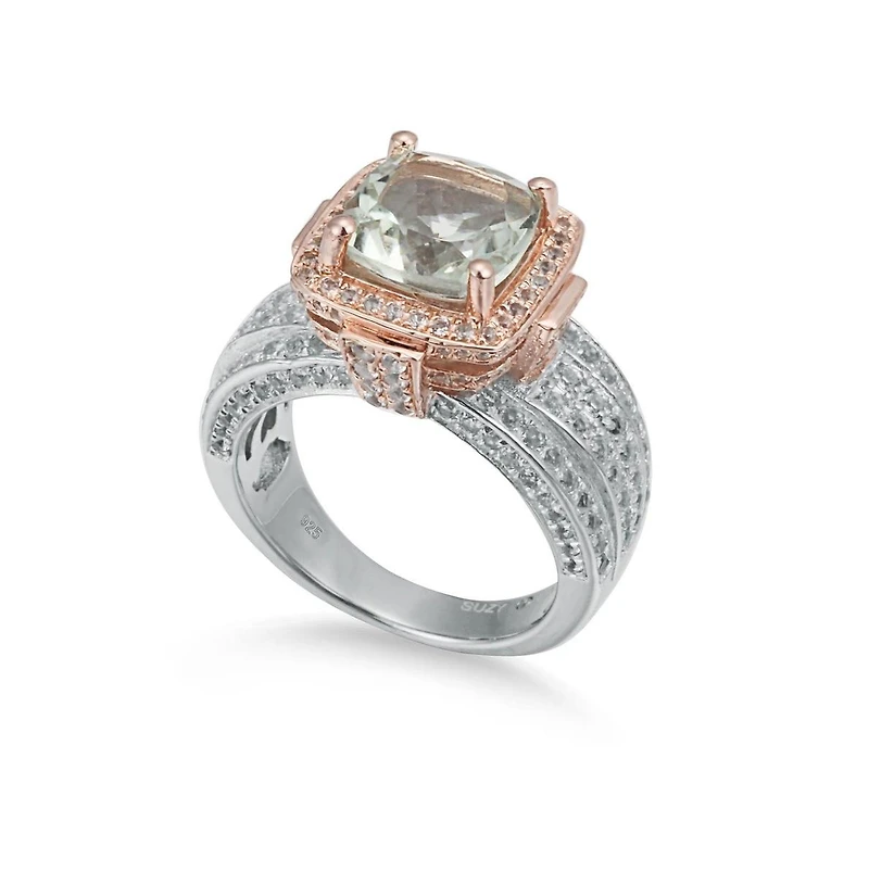 Suzy Levian New York Two-Tone Sterling Silver Cushion Cut Center Topaz Cocktail Milano Ring