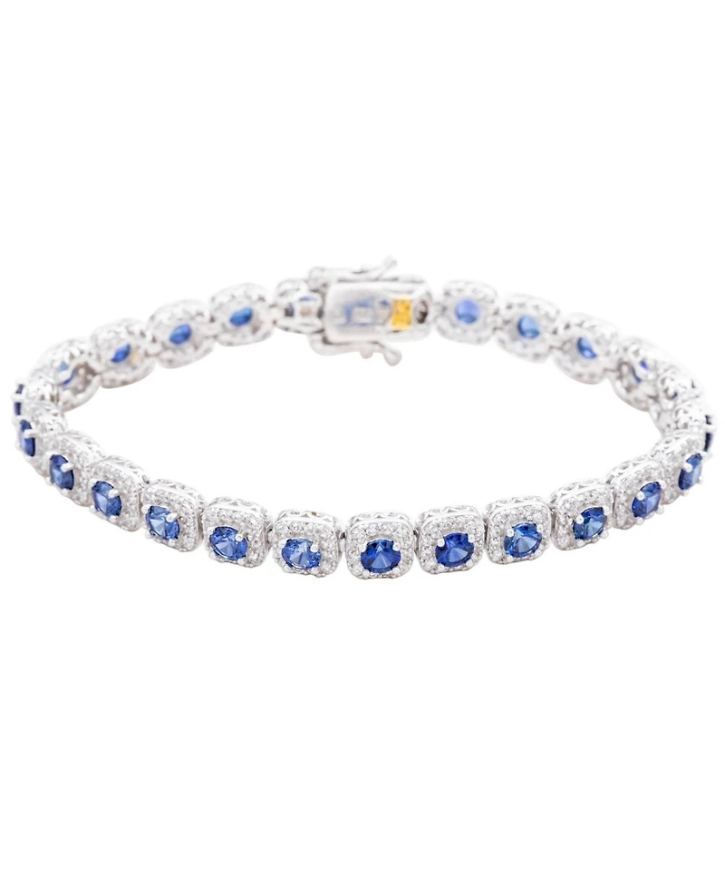 Suzy Levian Sterling Sapphire Halo Tennis Bracelet