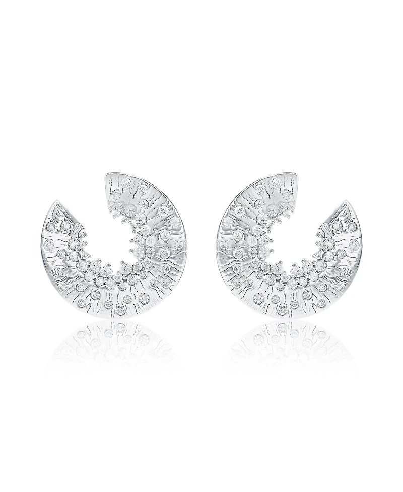 Suzy Levian Sterling Silver Cubic Zirconia Open Circle Crescent Earrings