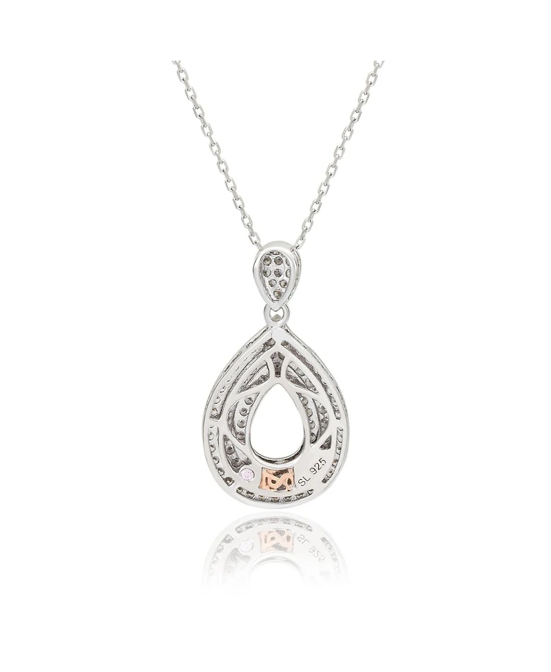 An elegant teardrop shaped pendant boasts rows of shining brown and white cubic zirconia gemstones. An 18 inch sterling silver chain is included with this pendant.