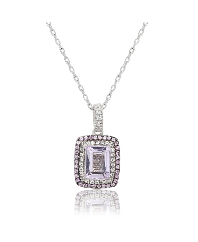 Suzy Levian Sterling Silver Emerald Cut Topaz And Sapphire Double Halo Pendant