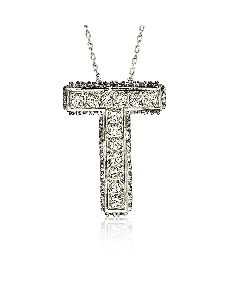 Suzy Levian Sterling Silver Sapphire 3-d Letter "T" Initial Pendant in Franklin, TN