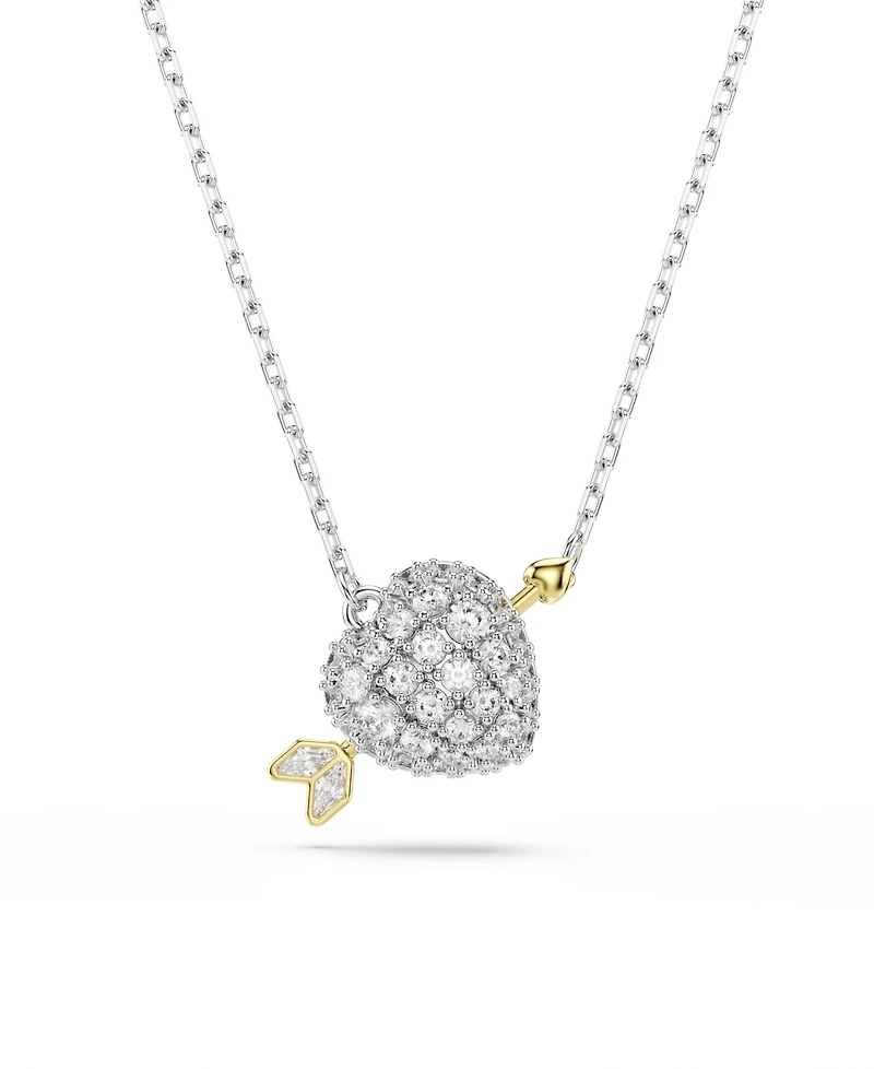 Fire some playful passion into your style with this glittering heart-shaped pendant. Suspended from a delicate chain, the rhodium plated motif is decorated with clear Swarovski Zirconia and is pierced by Cupid's gold-tone plated arrow. Combine it with the matching studs for an infusion of romance.