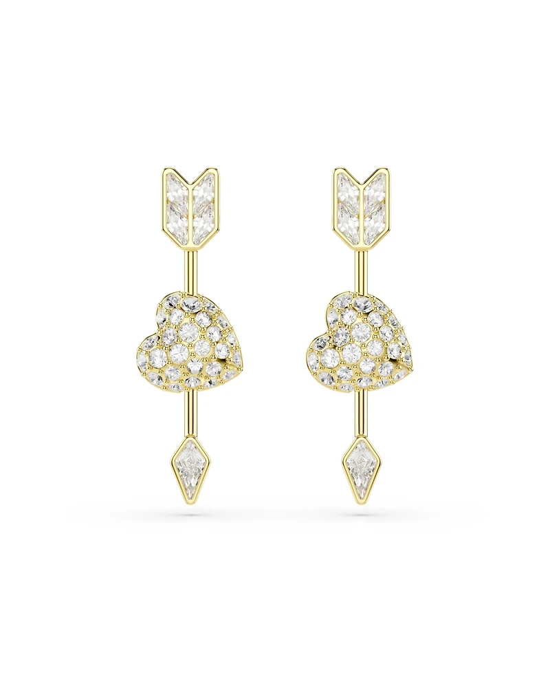 Swarovski Mixed Cuts, Heart with Arrow, White, Gold-Tone Plated Idyllia Drop Earrings in Franklin, TN