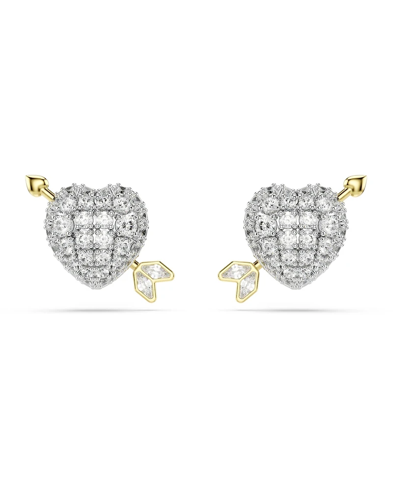 Swarovski Mixed Cuts, Heart with Arrow, White, Mixed Metal Finish Idyllia Stud Earrings