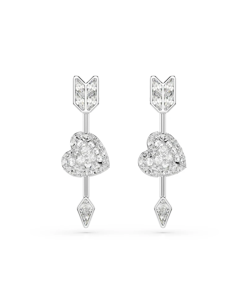 Swarovski Mixed Cuts, Heart with Arrow, White, Rhodium Plated Idyllia Drop Earrings
