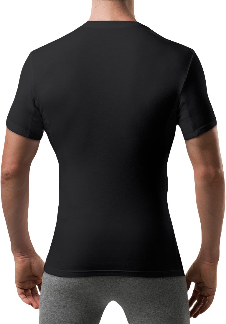 Say goodbye to under-the-shirt drama with this sweat-resistant V-neck undershirt, thanks to the patented Hydro-Shield Sweatproof technology. Perfected for those who live life minimally but stylishly, its slim fit hugs your frame for a sleek, tailored look. Lightweight and breathable, this marled gray essential works like a charm as a baselayer or on its own for laid-back casual vibes. It's all about quiet luxury and effortless comfort—soft, durable rayon fabric that keeps you cool and dry throughout the day. With a hit-at-hip length and short sleeves for easy layering, this is your new go-to for discreet confidence. Style it, sweat it, live in it!