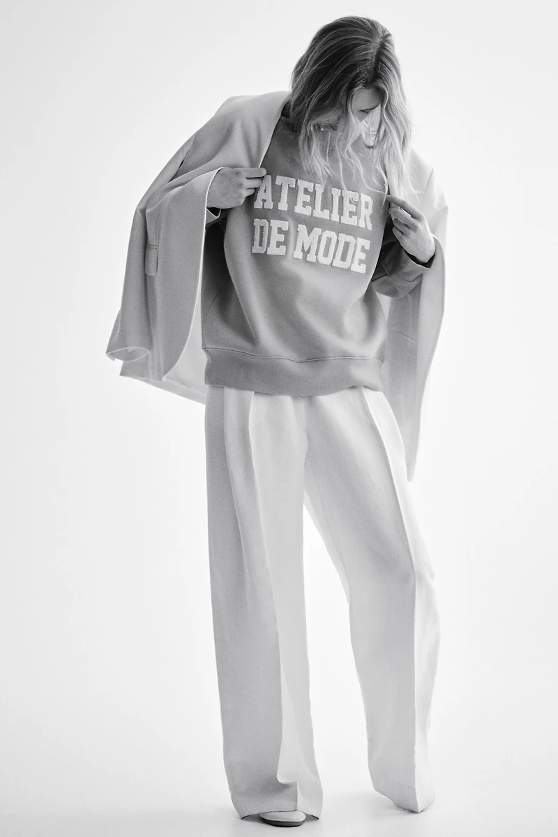 Oversized sweatshirt with a motif detail at front and a soft, brushed inside. Round neckline, dropped shoulders, and long sleeves. Ribbing at neckline, cuffs, and hem.